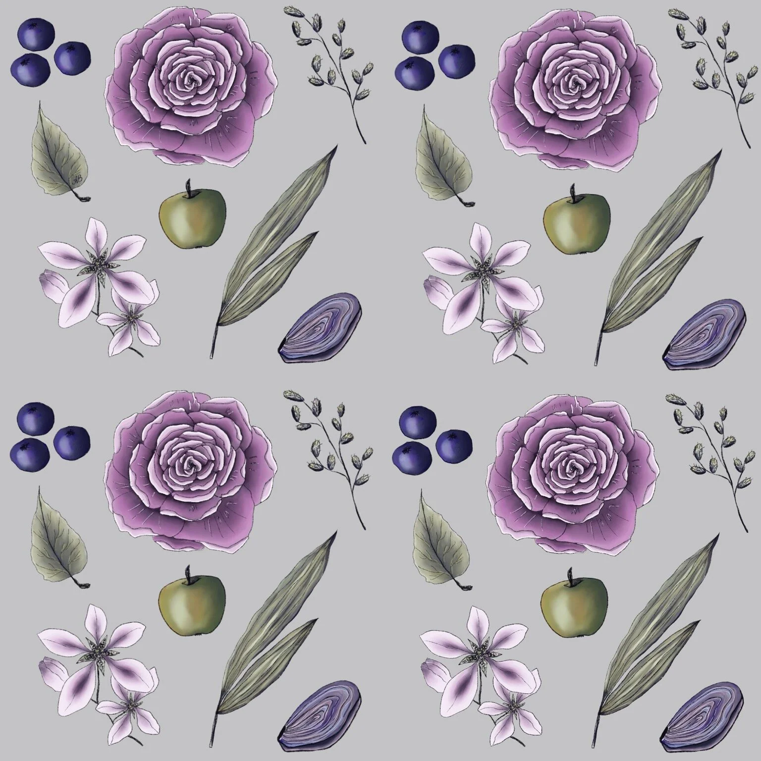 Pure love towards botanical art led me to an idea of creating seamless patterns that would be suitable for fabrics or wallpaper. Cozy, suiting and tender, they represent my deepest appreciation for nature and it’s magnificent beauty.
